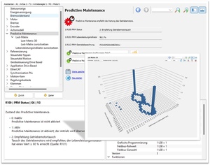 In the first expansion stage, users received a predictive maintenance solution that monitors the geared motor of a drive system. Its life performance is calculated using an analytical model and then output in the drive controller software via a life performance indicator, which is a value between 0 and 100 percent. At a threshold value of 90 percent or above, the software recommends replacing the geared motor and also makes this information available to a controller in the form of a readable parameter. This efficient solution for predictive maintenance requires neither external sensors nor additional wiring.