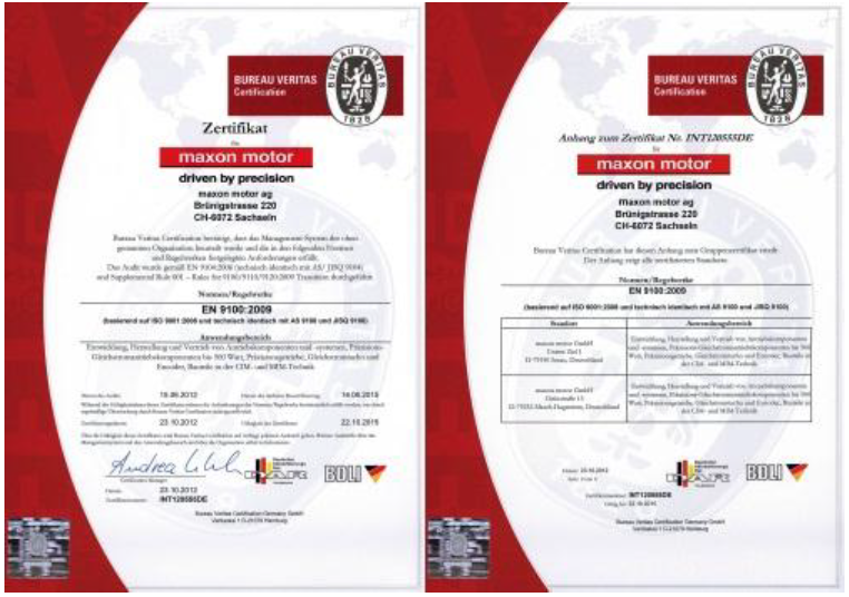 | Home> | DRIVES & MOTORS | >DC Drives | >maxon motor has QMS EN 9100 certification. |