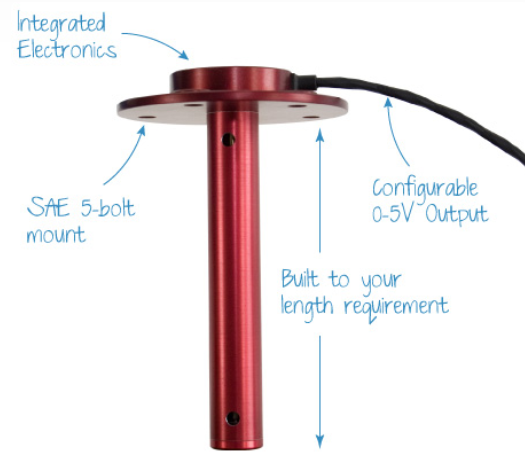 The R-Series liquid level sensor features an SAE 5-bolt mount and is manufactured to your length requirement.