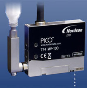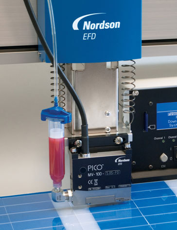 Nordson EFD PICO® Jet Dispensing System improves process control and reduces costs through exceptional fluid deposit repeatability at high production speeds.