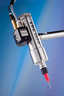 The range of possible applications is huge. Sample uses include electronics (bonding cell phone speakers with UV-cure adhesives), life sciences (attaching needles to medical syringes), and precision mechanical applications (jetting small amounts of grease on micro gears).